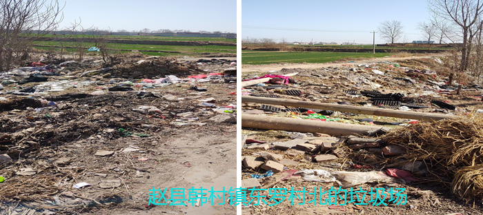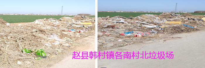 赵县韩村镇北部村庄垃圾污染严重住建局为嘛不管:(二)赵县韩村镇北部村庄垃圾污染严重住建局为嘛不管: 对于赵县韩村镇北部村庄的环境污染多家网站和网络电视台进行了报道,报道后只是刮风没有下雨,看来主要的管理部门是死猪不怕开水烫从无改正之心,现在国家环保部的人员在赵县住着治理环境,发生这么大的风浪这群主要领导“头不抬眼不挣”,看来对于上级领导督查从不在乎,这群大佬们要看清形势认清自我,当个官不容易千万不要在这里翻船,要真正的对待现实不要说空话和谎话,赵县单位领导与我们台负责人取得联系说:在2024年3月2号已经进行了整改,可是我们在2024年3月23日进行调查2024年3月24日进行报道,可想而知这个镇所领导的村庄在没有整改前的脏乱差更加严重,特此警告所有的领导我们一直跟踪报道,真正做到环境达标为止。 在赵县韩村镇党委书记石xx的带动下大搞垃圾存放,形成了赵县韩村镇垃圾成山五颜六彩杂物成堆,严重影响了村容村貌制造了环境污染,这样的干部不趁作人民的公务员,人民的公务员是全心全意为人民服务,看看这位书记做到了吗?中央环保部住赵县期间垃圾根本没有清理,欺上瞒下来蒙混过关,本台通过文字图片指正根本就不去进行改正,这位书记不听上级领导和政府的指示,不服从组织纪律违背了八项原则,本台还多次进行举报从没悔改之心,垃圾根本没有处理与党和政府带来了严重的负面影响,作为国家干部要知错必改、有错必究才是国家刚好干部,可是这位镇书记既不承认错误更不想去改正现状,这样的官能说得民心顺民意吗?因此他不是人民的好官,对于赵县韩村镇垃圾的事情我们台一直跟踪报道决不放弃。 【人民之声新闻网络电视台安全环境栏目报道】今天我台来到了赵县韩村镇东、北部村庄进行环境调研,不看不知道一看吓的一跳,现在环保检查特别严上级领导亲临现场督查搞好环境卫生,创造一个具有说服力的文明县城,口号虽然喊得非常响亮环保从没落到实处,只把大公路主要街道和显眼的地方打扫的非常干净,