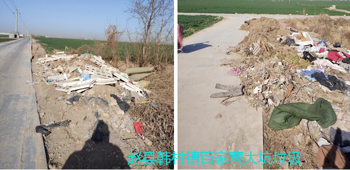 在没有走到的地方觉得领导不去的地方堆放垃圾成山,五颜六色的废品到处都是,有的已经腐烂撒发臭气味道几十米就能闻到,这些事情的出现并不是客观原因,这是当地政府不重视上级政府的指示精神和保护环境的重大意义,严重的损害了政府形象和人民利益,真不是一个合格的国家干部,通过走访调查真是错误百出到处是污染违规地方,第一个站口就是各南北口的垃圾成堆快把田间公路侵占。 一路北上来到了韩村镇北杨家庄村,还没进村就看到村南口破烂不堪,进村的路坑坑洼洼颠覆厉害非常难走,垃圾遍地都是严重的影响了村容村貌和社会环境,这样的村庄现在还是真少。